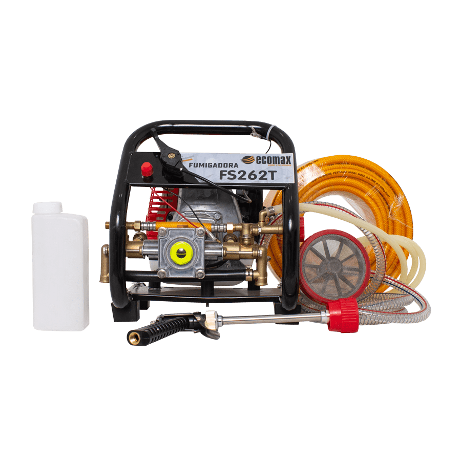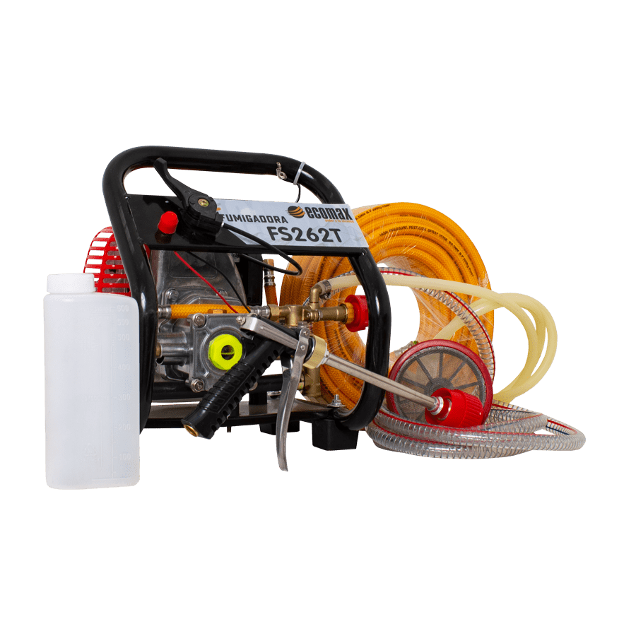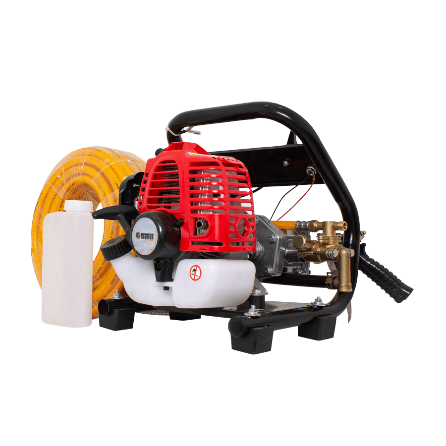 Motor gasolina ECOMAX que proporciona una fuente confiable, económica. Fumigadora de embolo, en Acero, con capacidad de aspersión hasta de 355psi, y 8lpm (consulte su manual para conocer cuantas boquillas y de que caudal puede usar según la aplicación)