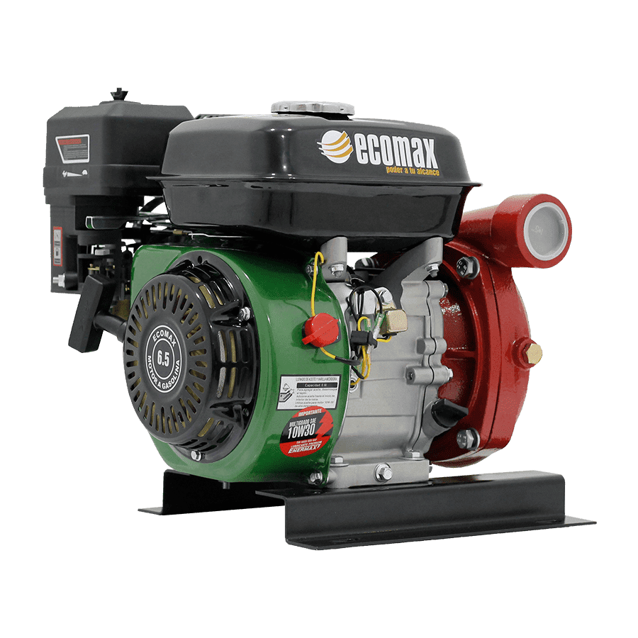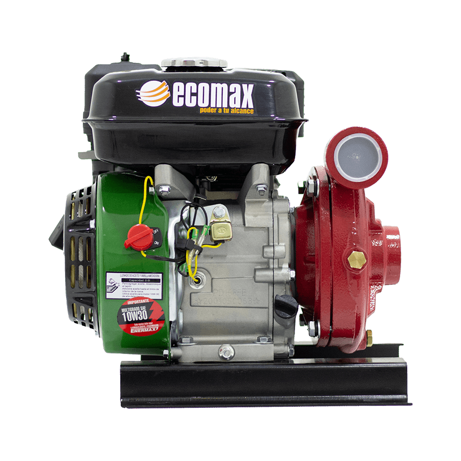 Motobomba a gasolina Ecomax ensamblada con nuestro potente y eficiente motor Ecomax. Motor a gasolina Ecomax que proporciona una fuente de potencia confiable, económica y segura. Kit de bomba de alta presión en hierro de elevada cabeza máxima y óptimo cau