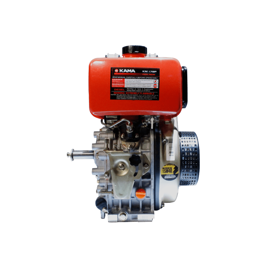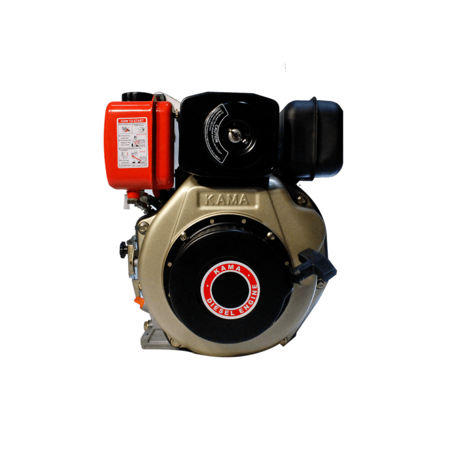 Motor diésel KAMA de inyección directa. Motor monocilíndrico refrigerado por aire y de lubricación forzada por bomba. Bajo nivel de consumo de combustible.