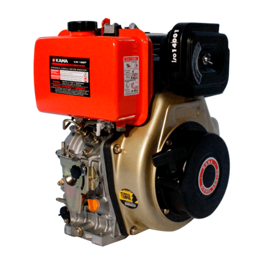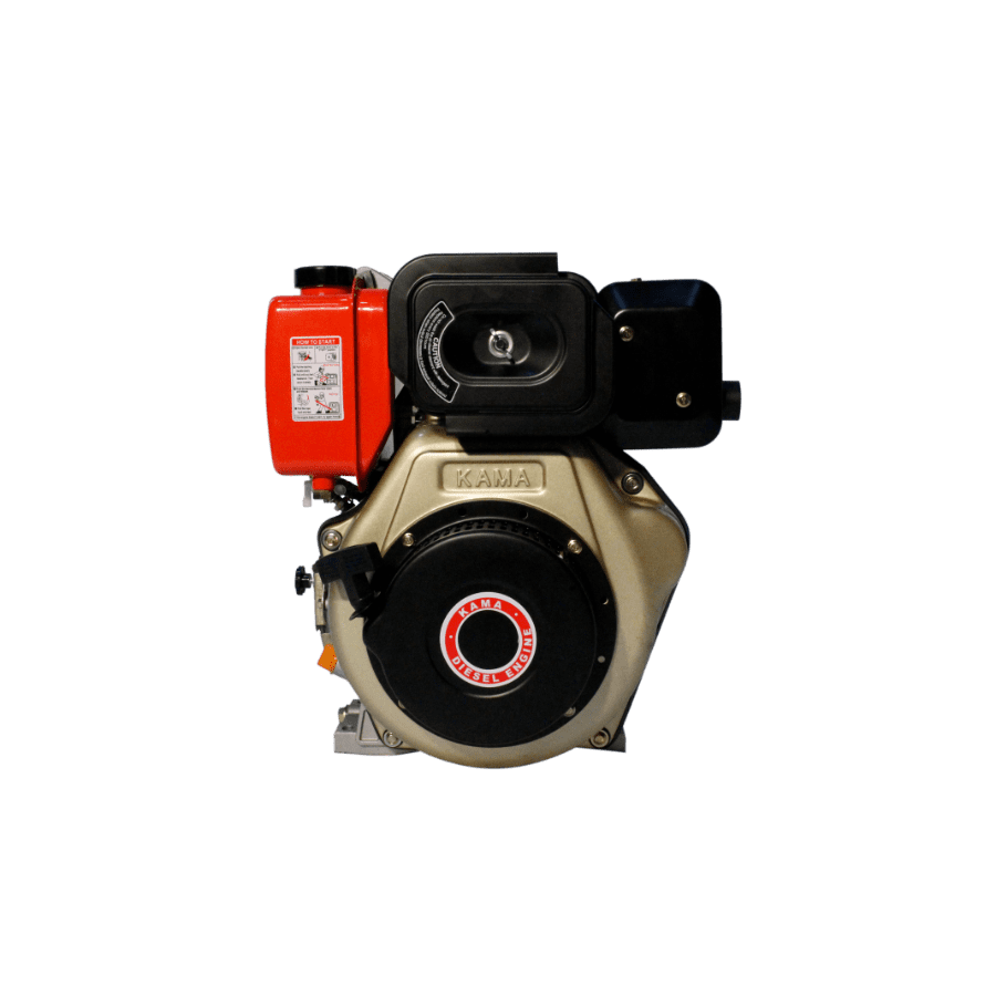 Motor diésel KAMA de inyección directa. Motor monocilíndrico refrigerado por aire y de lubricación forzada por bomba. Bajo nivel de consumo de combustible.